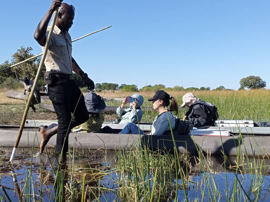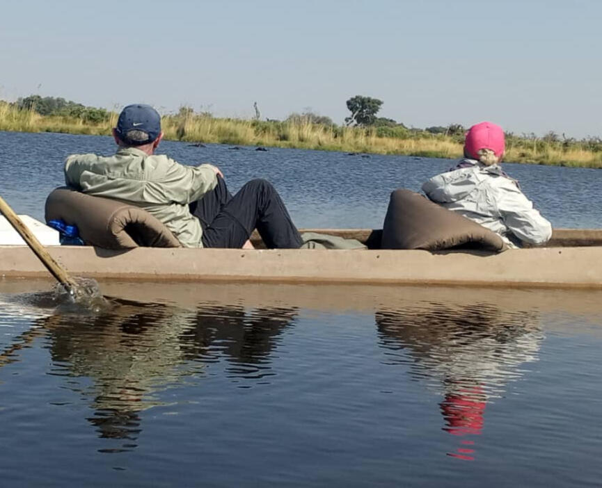 After breakfast, we drive to our next destination: the legendary Okavango Swamps.Here, in a private 118,200 ha concession, we meet the Bayei people — known as the “Swamp Bushmen” — who have lived in these wetlands since the 1750s. Alongside them, the Hambukushu and Banoka tribes, who trace their roots back to Zambia’s Lozi tribe, also call this region home.We explore the pristine wilderness by mokoro (traditional dugout canoe) and on foot, guided by experienced local mokoro guides.Lunch is enjoyed in the vastness of Moremi, surrounded by the tranquil beauty of the delta.DAY 3 – OKAVANGO SWAMPS | MOKORO & WALKING TRAILS