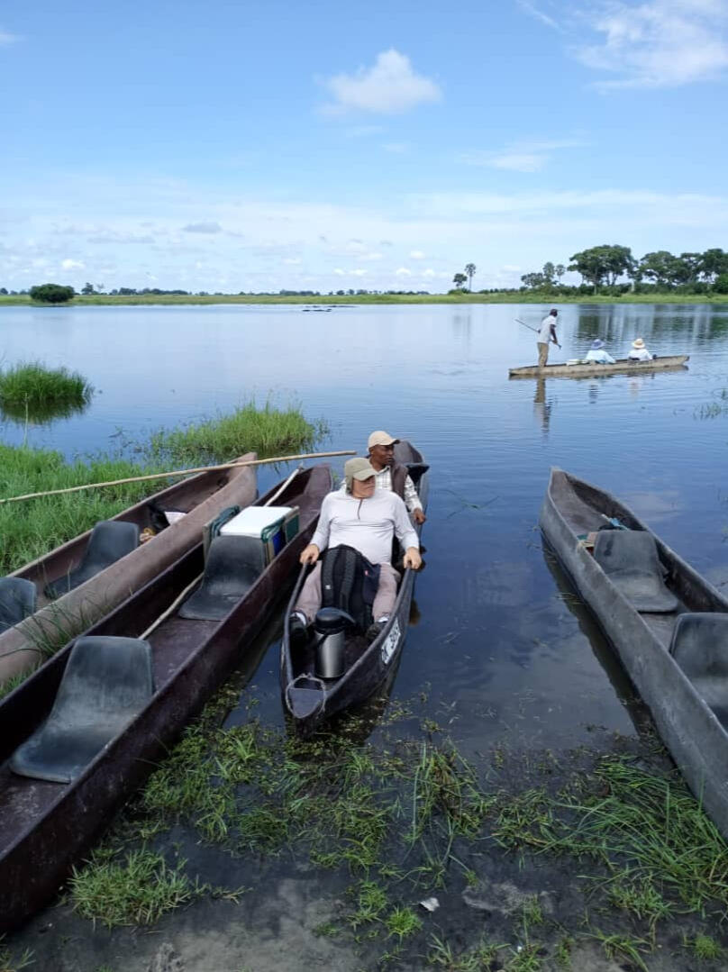 We meet today at Island Safari Lodge by 12:00 for a warm welcome and briefing.After introductions, everyone sets out to stock up on groceries and fresh meat at local retailers like Spar or Choppies (we recommend Spar). Ahead of your arrival, we coordinate with trusted private butcheries to prepare high-quality meat parcels at preferential prices.We return to Island Safari Lodge for our first night together.Optional: Enjoy a sunset boat cruise on the Thamelekane or Boro Rivers — the perfect start to your adventure.DAY 2 – OKAVANGO SWAMPS | MOKORO & WALKING TRAILS