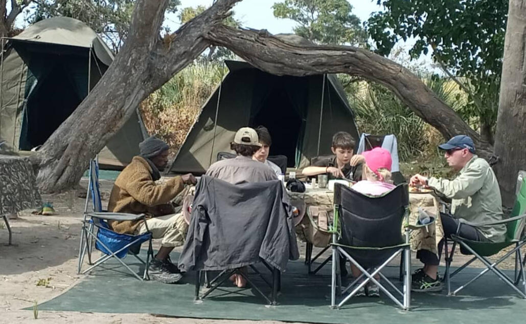 Wake to coffee and rusks before breakfast, then embark on another unforgettable day in the Okavango.This rich ecosystem shelters over 122 mammal species, 71 fish species, 450+ bird species, 64 reptiles, and more than 1,300 flowering plants. We drift through channels, spotting hippos, elephants, lechwe, blue wildebeest, zebra, and other wildlife.Lunch is beneath the shade of a matswere tree, followed by a short siesta. In the afternoon, we continue on different trails, enjoying the bush from water and on foot.Return to camp for a shower and welcome drink around the campfire. After dinner, share stories under a sky so clear it feels like the stars are within reach.DAY 4 – SECOND & THIRD BRIDGE | MOREMI